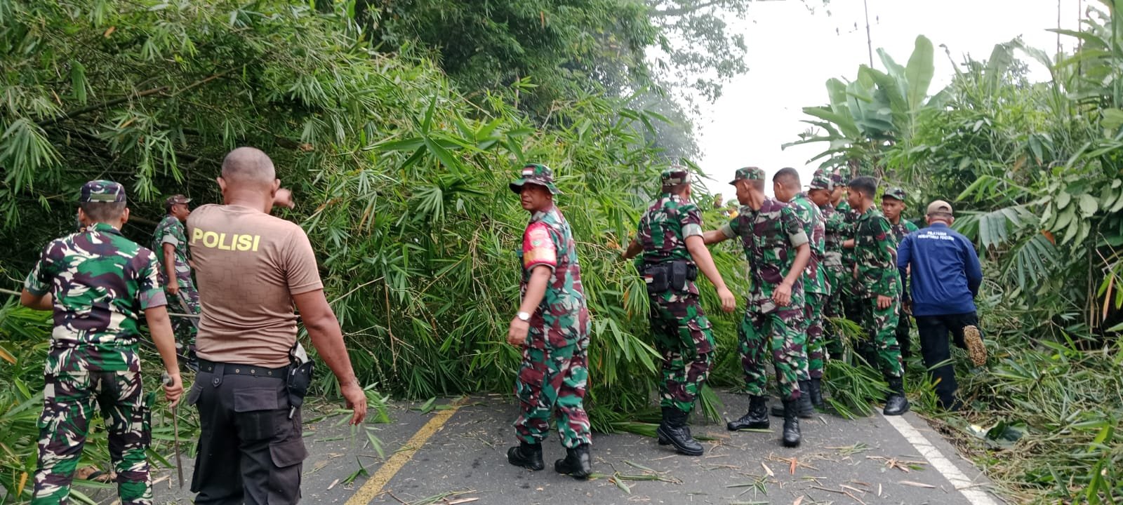 TNI-Polri dan Warga Gotong Royong Bersihkan Tebing Olos PUT