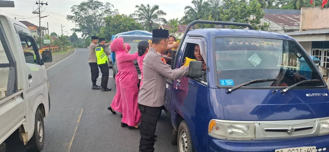 Polsek Padang Ulak Tanding Bagikan 100 Kotak Takjil untuk Pengguna Jalan